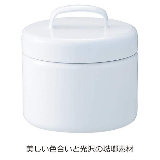 Noda Horo Enamel Storage Canister L - White Round with Inner Lid Made in Japan