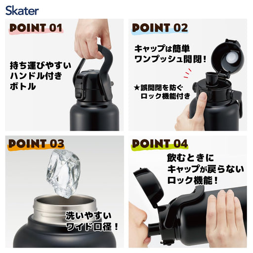 Skater Champion One-Push Direct Bottle with Handle 1000Ml Navy Std10H